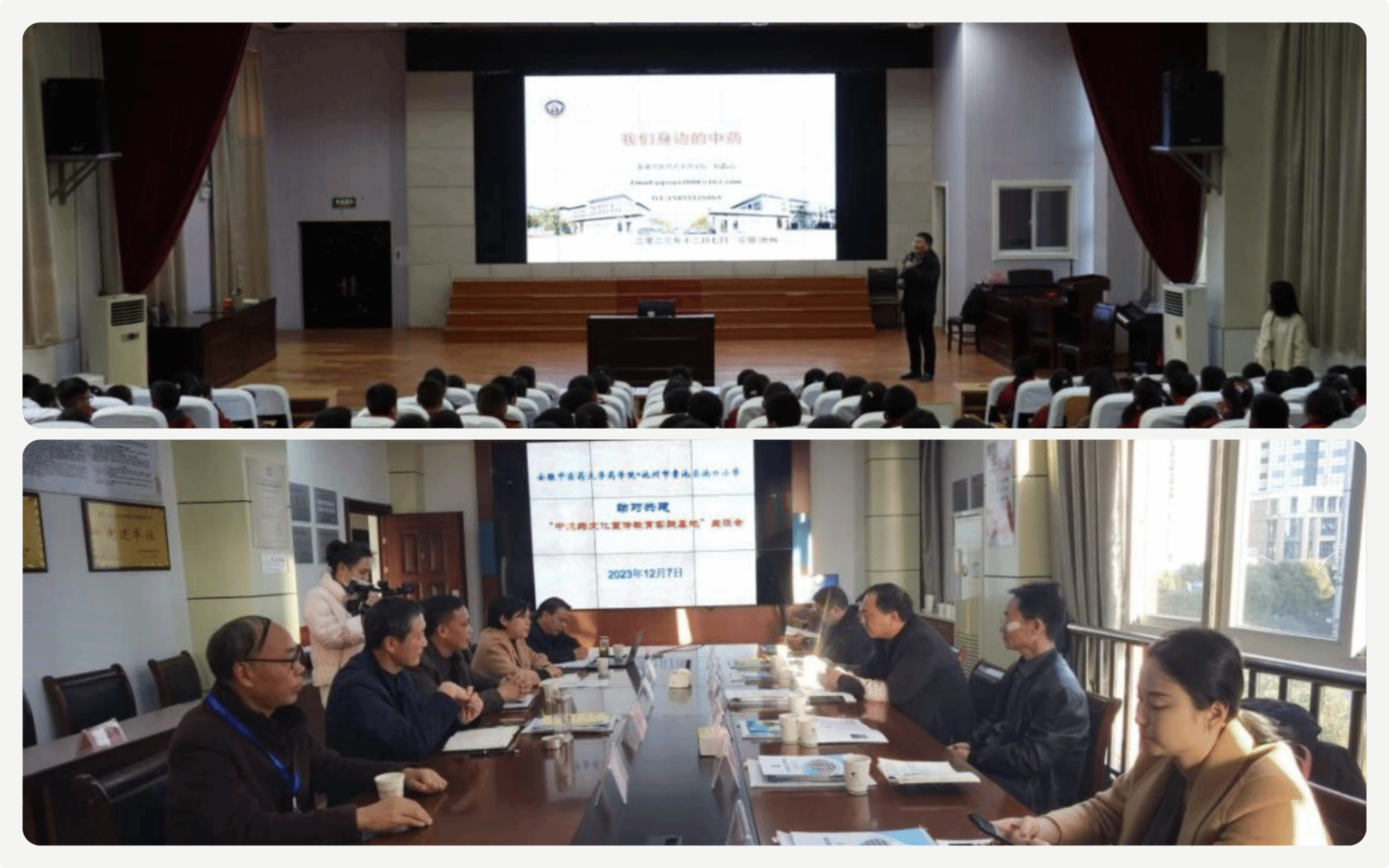 在交流座谈会上,池口小学校长孙华俊介绍了校史。他表示,池口小学是安徽中医药大学中药资源中心重点结对开展中医药文化宣传教育的小学之一,与中药资源中心同年获批安徽省中医药文化宣传教育基地,小学多年来一直坚持在全体学生中开展科普宣传实践活动,建有“小池少年宫”“贵池植物标本科普馆”“小小中医堂”等活动场所。