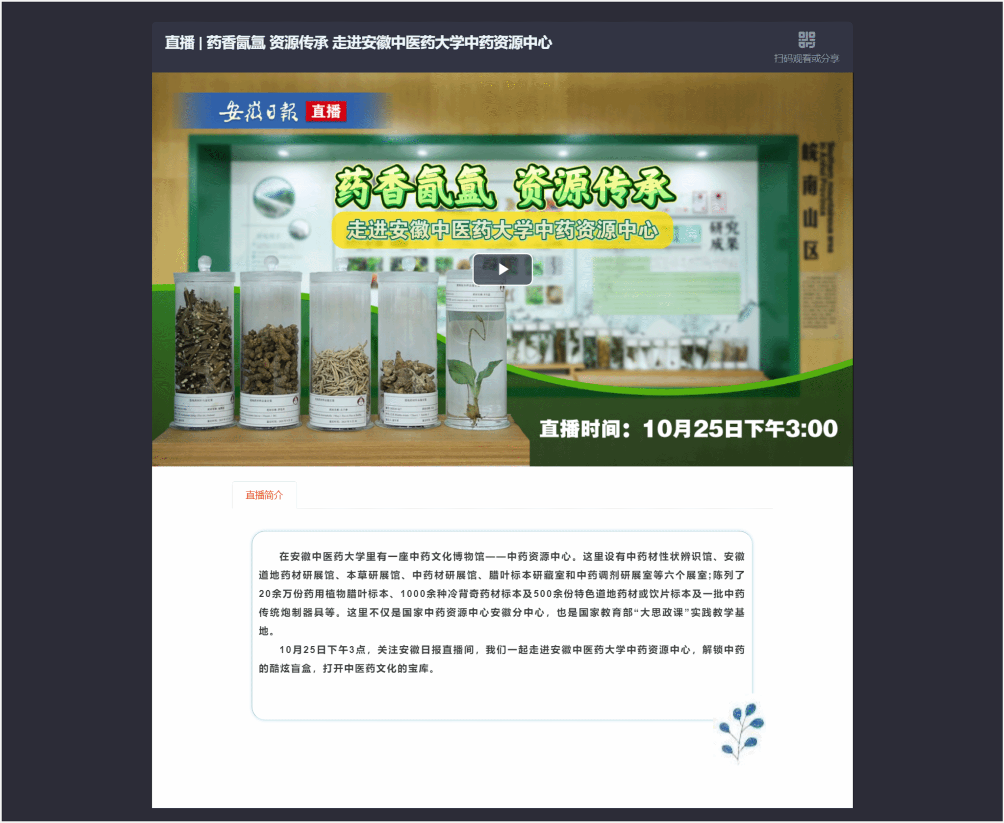 直播 | 药香氤氲 资源传承 走进安徽中医药大学中药资源中心
