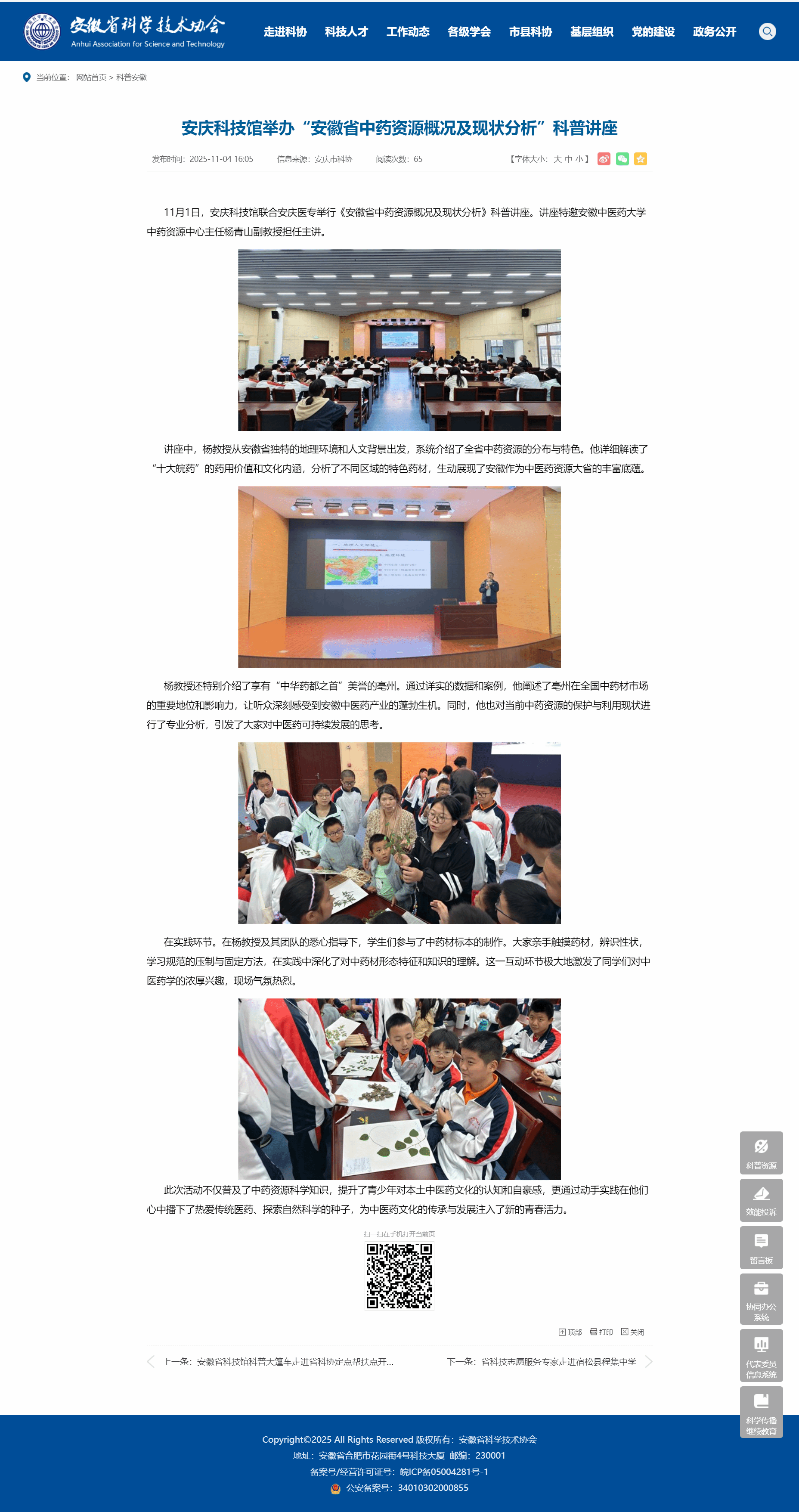 【科普前线】安庆科技馆举办“安徽省中药资源概况及现状分析”科普讲座