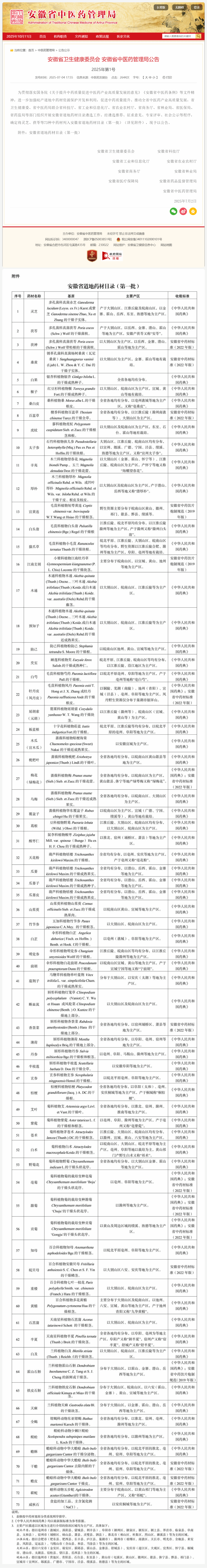 【政府公告】关于发布安徽省第二批产地趁鲜切制药材品种目录的公告