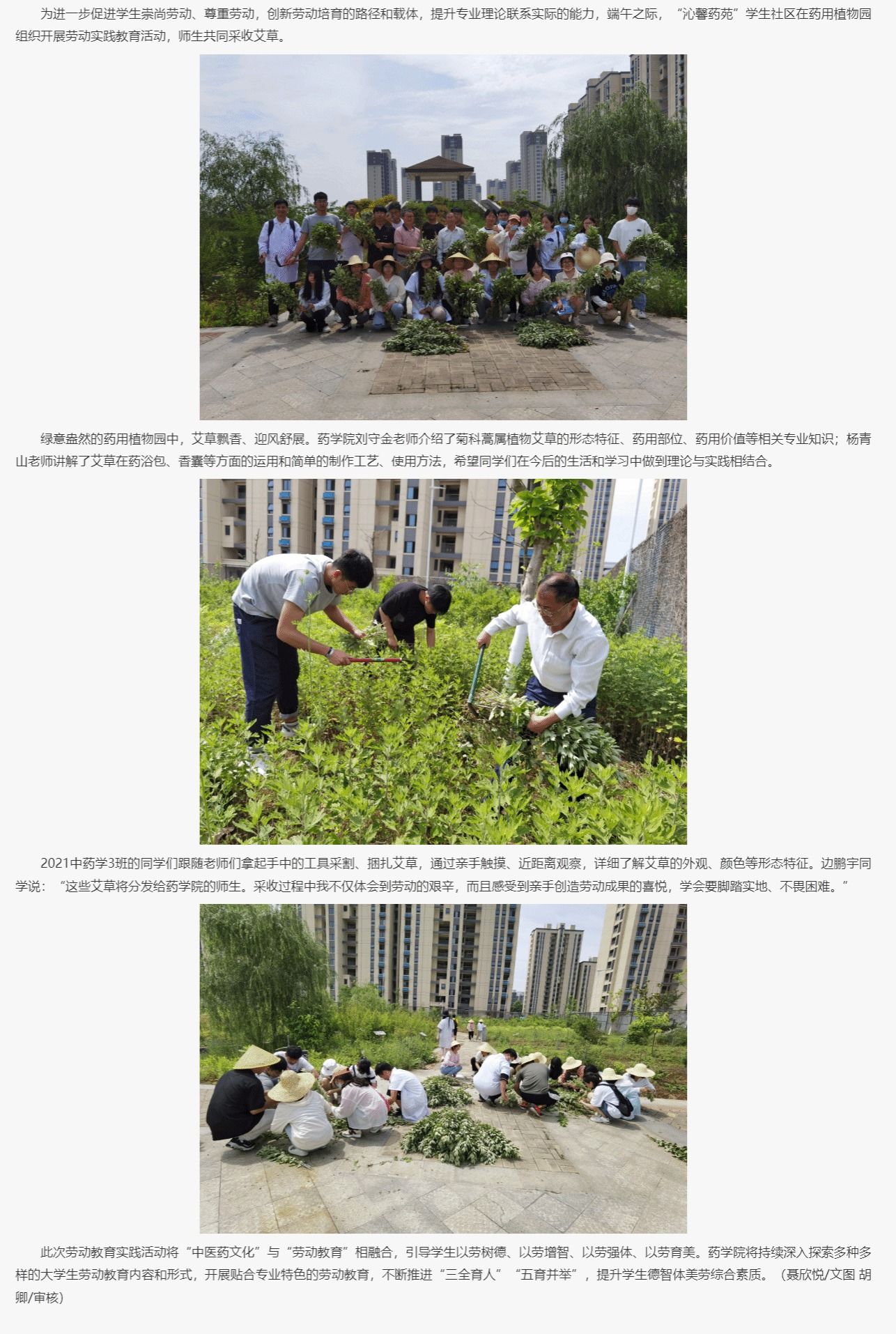 【劳动教育】“艾”劳动 齐参与 药学院端午节开展劳动教育实践活动
