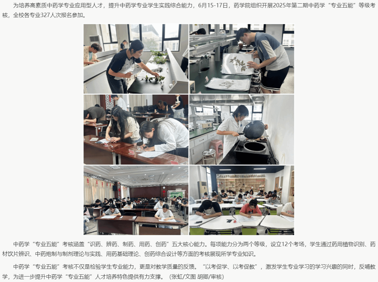 【五能考核】药学院开展2025年第二期中药学“专业五能”等级考核