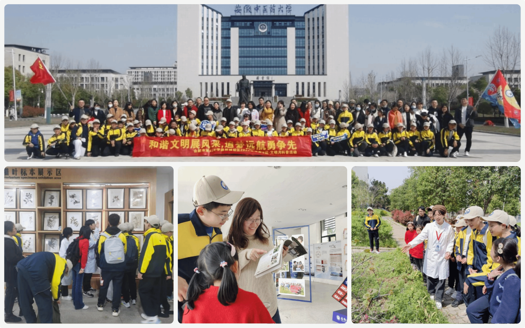 为顺应弘扬中医药文化潮流、促进中医药文化进校园,药学院积极开展“沁人馨,助校园”等一系列志愿服务。3月26日,合肥市第四十五中学(森林城校区)117名学生和家长,在讲解员和志愿者的带领下,分批参观了中药资源中心六大馆室、药学院百草园以及中药资源科考展,详细了解安徽丰富中医药资源的同时,深深感受中医药文化的魅力。